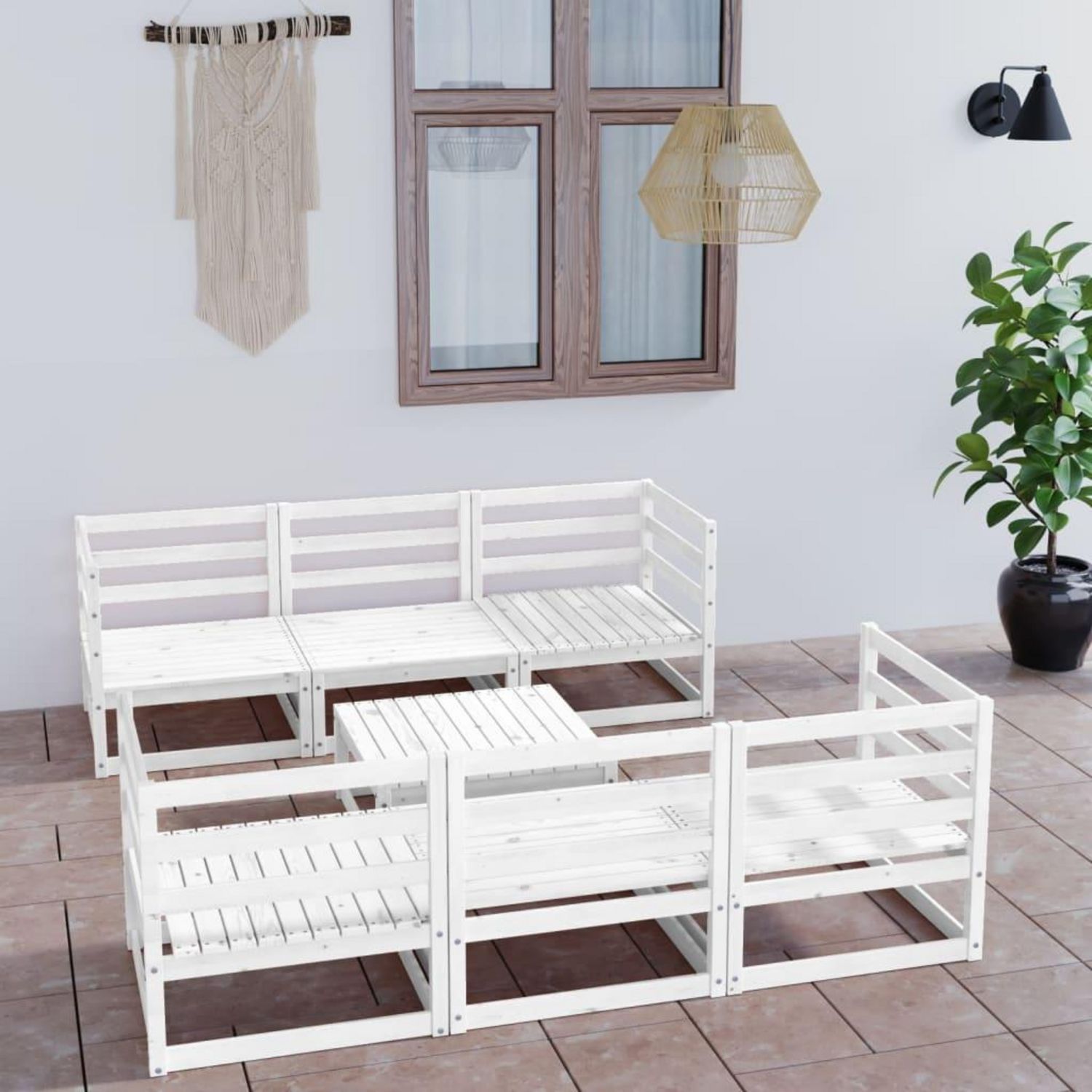 Salon de jardin 7 pcs Blanc Bois de pin massif