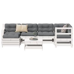Salon de jardin 7 pcs blanc bois de pin massif