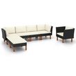 Salon de jardin 7 pcs Resine tressee et bois d'eucalyptus Noir