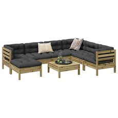 Salon de jardin 8 pcs avec coussins bois de pin impregne