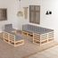 L'ensemble de salon de jardin est fabrique en bois de pin massif, ce qui le rend robuste et stable. Les coussins ajoutent un confort supplementaire. Vous pouvez le combiner avec d'autres segments modulaires pour creer vos propres configurations de salon de jardin !