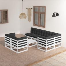 Salon de jardin 8 pcs avec coussins Bois de pin massif