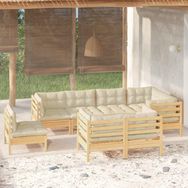 Salon de jardin 8 pcs avec coussins creme Bois de pin massif