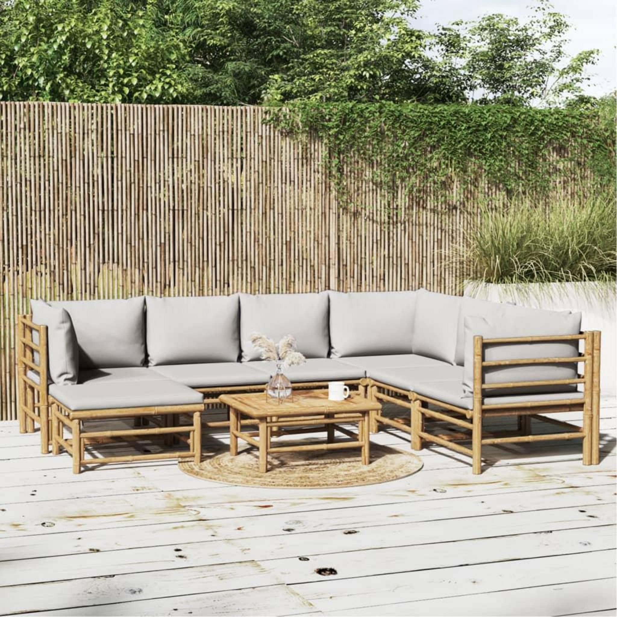 Salon de jardin 8 pcs avec coussins gris clair bambou