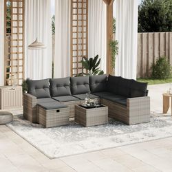 Salon de jardin 8 pcs avec coussins gris clair resine tressee