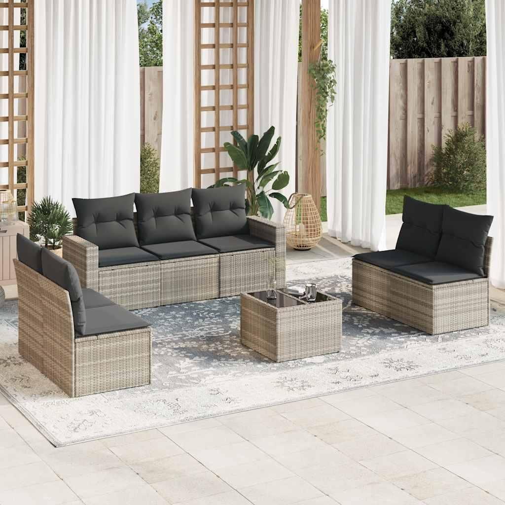 Salon de jardin 8 pcs avec coussins gris clair resine tressee