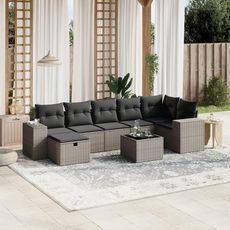 Salon de jardin 8 pcs avec coussins gris clair resine tressee