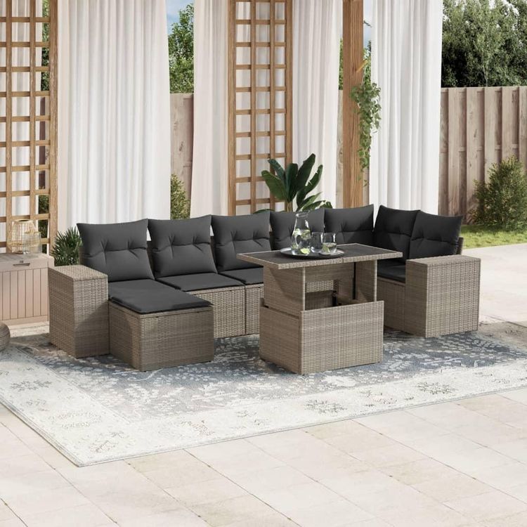 Salon de jardin 8 pcs avec coussins gris clair resine tressee