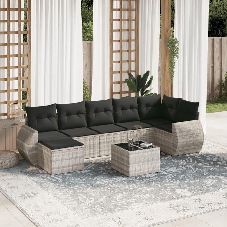 Salon de jardin 8 pcs avec coussins gris clair resine tressee