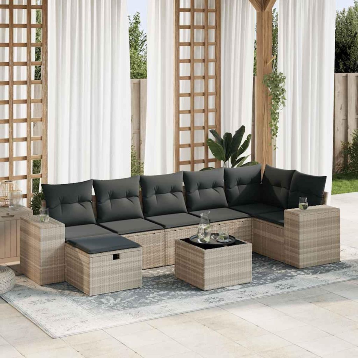 Salon de jardin 8 pcs avec coussins gris clair resine tressee