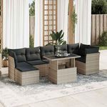 Salon de jardin 8 pcs avec coussins gris clair resine tressee