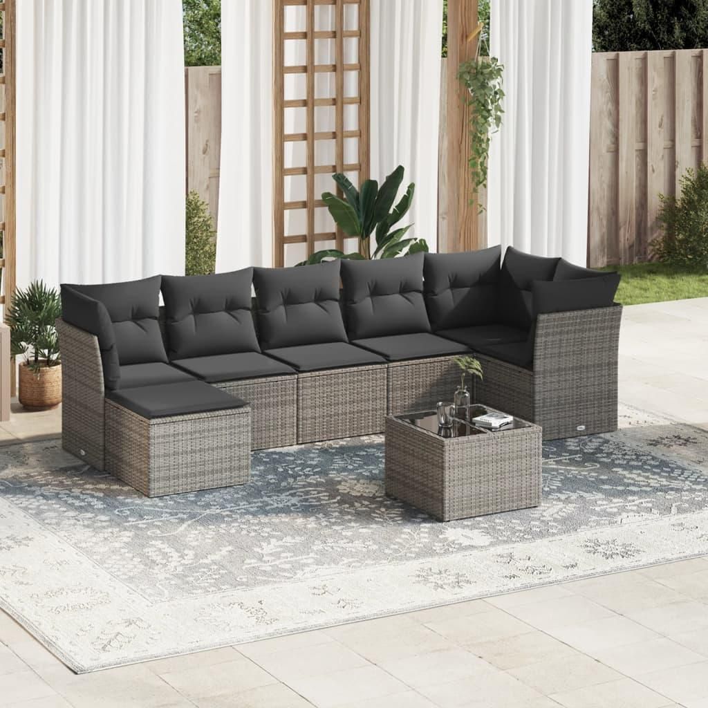 Salon de jardin 8 pcs avec coussins gris resine tressee