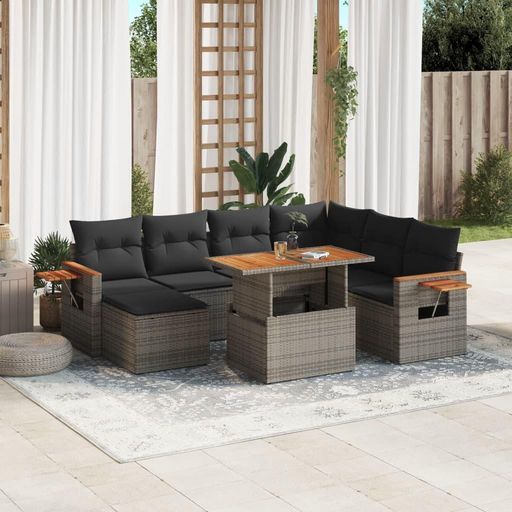 Salon de jardin 8 pcs avec coussins gris resine tressee