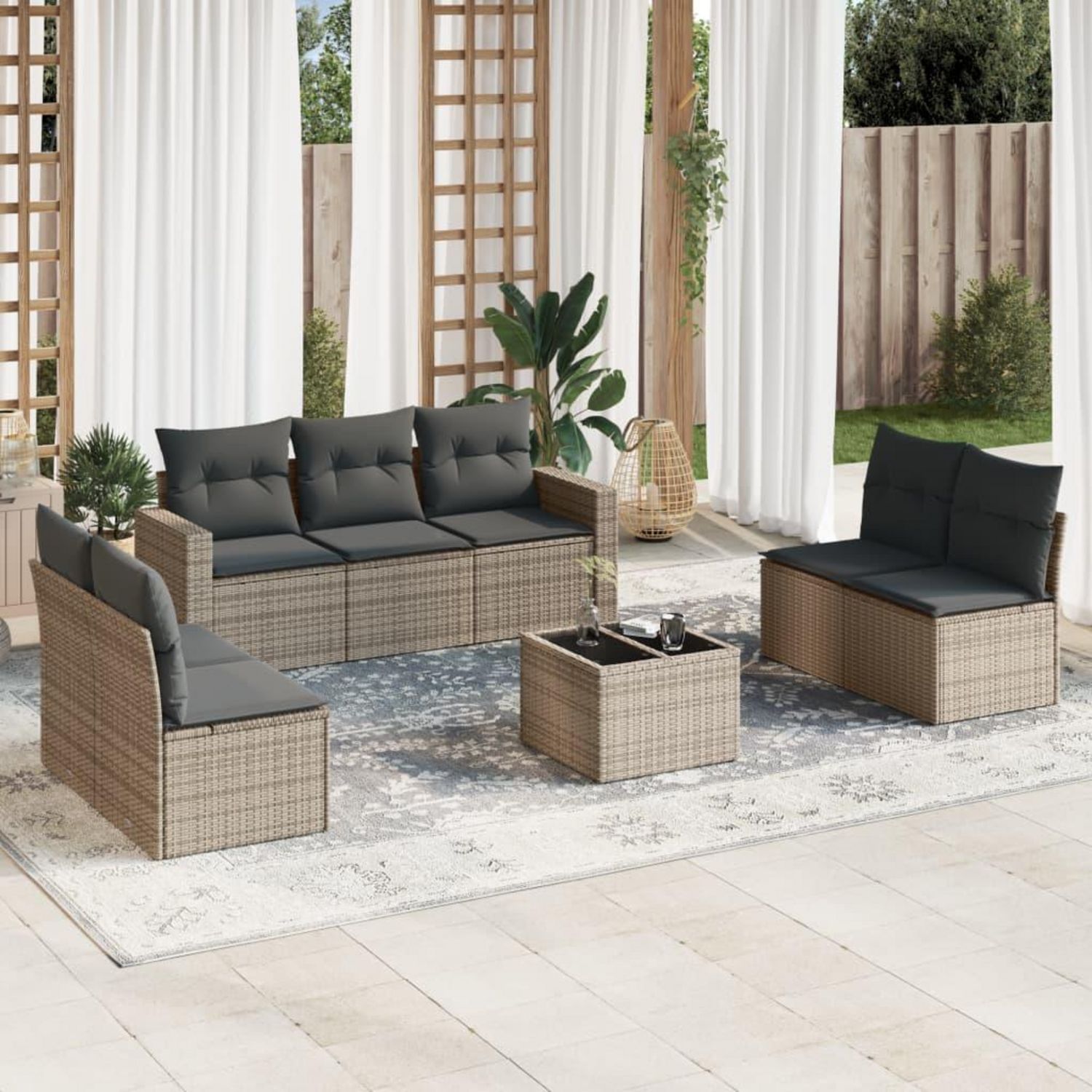 Salon de jardin 8 pcs avec coussins gris resine tressee