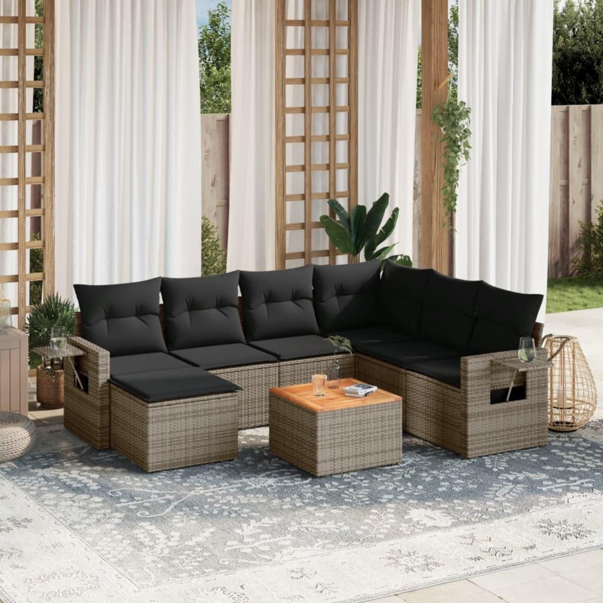 Salon de jardin 8 pcs avec coussins gris resine tressee
