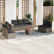 Salon de jardin 8 pcs avec coussins gris resine tressee