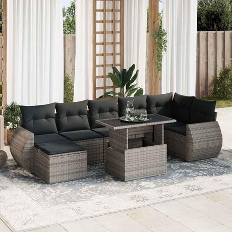 Salon de jardin 8 pcs avec coussins gris resine tressee