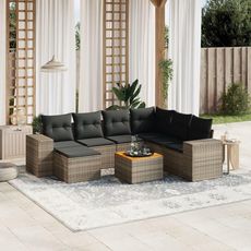 Salon de jardin 8 pcs avec coussins gris resine tressee