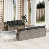 Salon de jardin 8 pcs avec coussins gris resine tressee