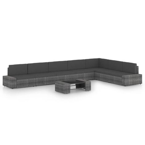 Salon de jardin 8 pcs avec coussins Gris Resine tressee