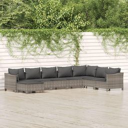 Salon de jardin 8 pcs avec coussins Gris Resine tressee