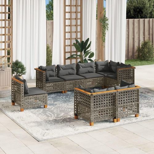 Salon de jardin 8 pcs avec coussins gris resine tressee