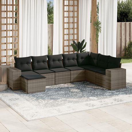 Salon de jardin 8 pcs avec coussins gris resine tressee