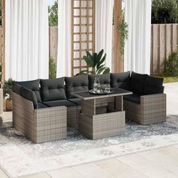 Salon de jardin 8 pcs avec coussins gris resine tressee