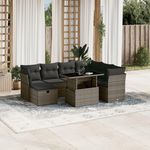 Salon de jardin 8 pcs avec coussins gris resine tressee