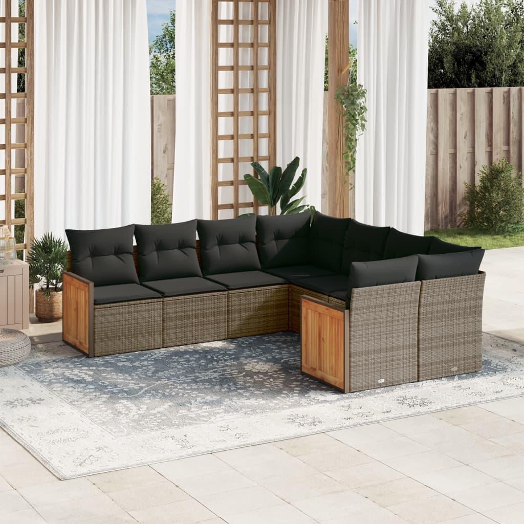 Salon de jardin 8 pcs avec coussins gris resine tressee