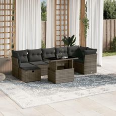 Salon de jardin 8 pcs avec coussins gris resine tressee