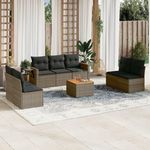 Salon de jardin 8 pcs avec coussins gris resine tressee