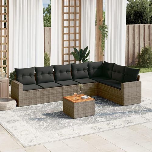 Salon de jardin 8 pcs avec coussins gris resine tressee