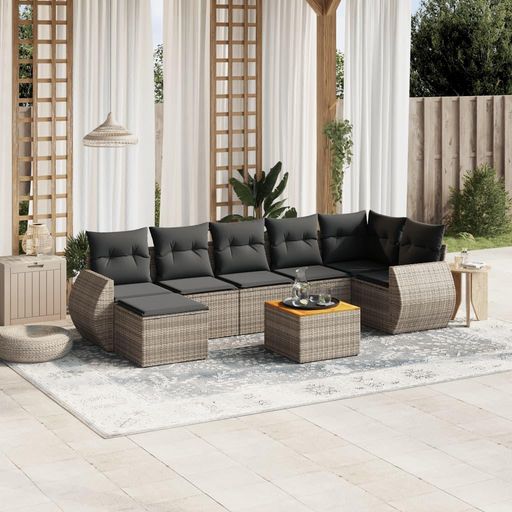 Salon de jardin 8 pcs avec coussins gris resine tressee
