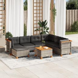 Salon de jardin 8 pcs avec coussins gris resine tressee