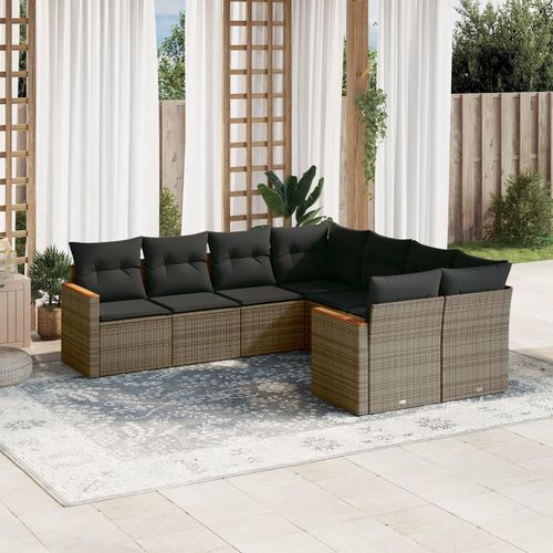 Salon de jardin 8 pcs avec coussins gris resine tressee