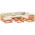 Salon de jardin 8 pcs avec coussins marron cire bois pin massif