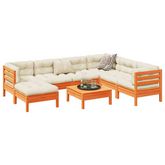 Salon de jardin 8 pcs avec coussins marron cire bois pin massif