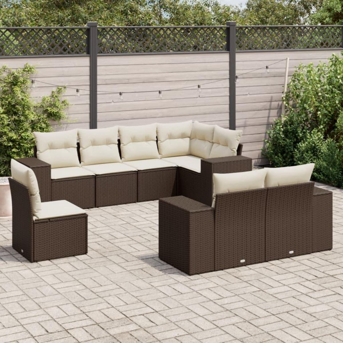 Salon de jardin 8 pcs avec coussins marron resine tressee