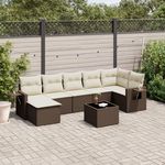 Salon de jardin 8 pcs avec coussins marron resine tressee