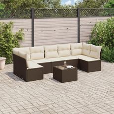 Salon de jardin 8 pcs avec coussins marron resine tressee