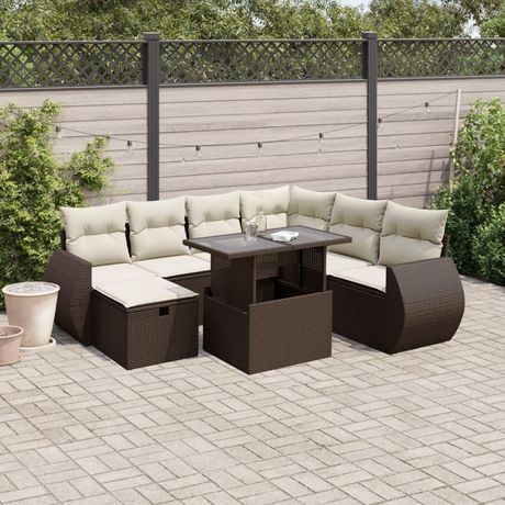 Salon de jardin 8 pcs avec coussins marron resine tressee