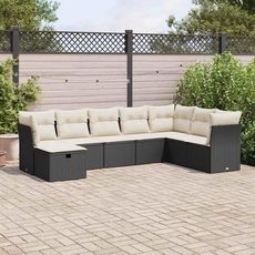 Salon de jardin 8 pcs avec coussins noir resine tressee