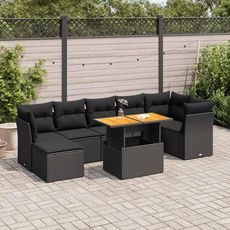 Salon de jardin 8 pcs avec coussins noir resine tressee