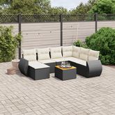 Salon de jardin 8 pcs avec coussins noir resine tressee