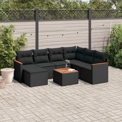 Salon de jardin 8 pcs avec coussins noir resine tressee