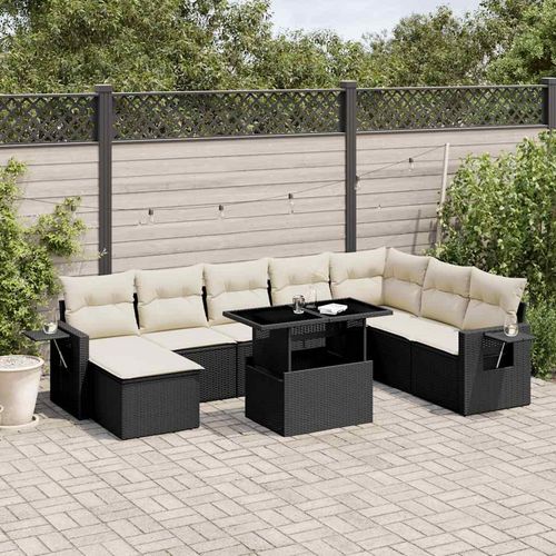 Salon de jardin 8 pcs avec coussins noir resine tressee