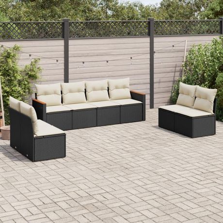 Salon de jardin 8 pcs avec coussins noir resine tressee