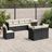 Salon de jardin 8 pcs avec coussins noir resine tressee