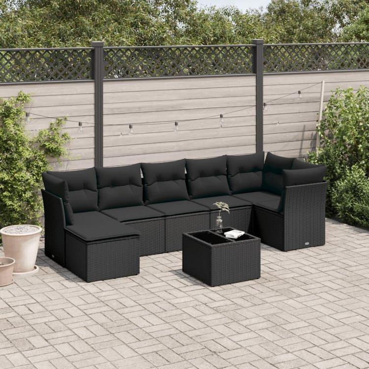 Salon de jardin 8 pcs avec coussins noir resine tressee